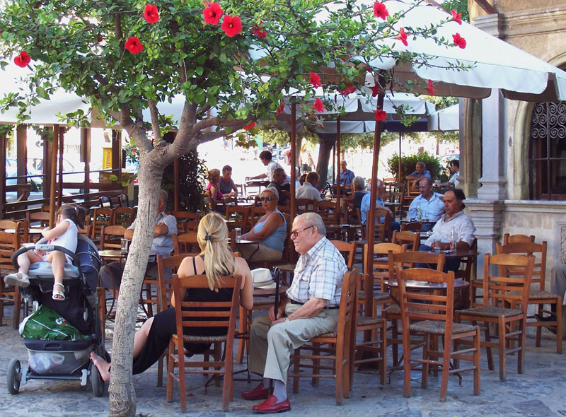 Located on the north coast, in roughly the center of the island, Heraklion is a town where most visitors stay for a night or two before proceeding to the more charming towns and villages of the island. I would recommend that first time visitors head West toward Rethimno and Chania. Both of these towns are excellent places from which to base your stay on the island, each having old ports lined with Venetian architecture, restaurants, and shopping. Rethimno is a great town, but if you have only a limited time on the island, I would choose Chania over Rethimno and use that as my base.