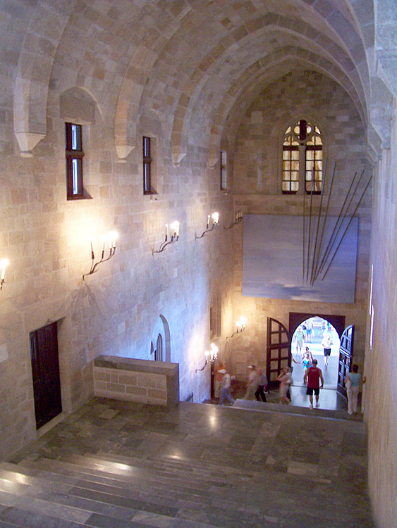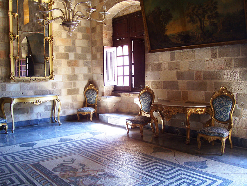 Cars aren't allowed in the Old Town during the warm months. The streets are reserved for pedestrians ambling between outdoor restaurants and shops. It's a delight to explore the maze of small streets lined with an eclectic mix of buildings that date from various periods of Rhodes' long history. The most dominant structure is the Castle of the Knights, which now houses a museum on the lower level with artifacts from Rhodes' long history. Rooms on the upper levels are restored with furnishings in the medieval style, beautiful floor mosaics, and notable works of art.