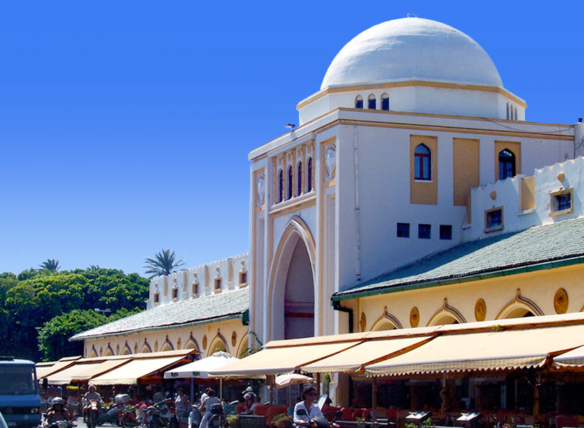 First I wanted to head to the Old Town and see what all the hoopla was about. Walking along the harbor, the large structure of the New Market came into view, recognizable from the large domed centerpiece and Arab style arches. All along the front of the building, there are outdoor restaurants. If you walk through one of the entries there's a large courtyard inside, lined with small shops selling jewelry and tourist merchandise. Behind the building, the municipal buses leave for various points around the island.